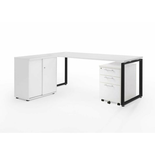 Ultimo Workstation: Desk and Cupboard Return 1800 x 1600 Standard Metal Leg