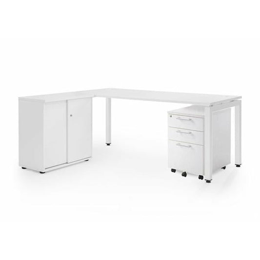 Ultimo Workstation: Desk and Cupboard Return 1800 x 1600 Closed Metal Leg