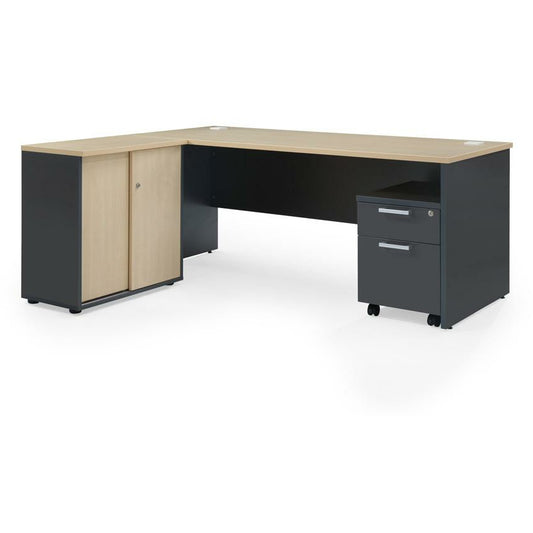 Ultimo Workstation: Desk and Cupboard Return 1800 x 1600 Standard Metal Leg