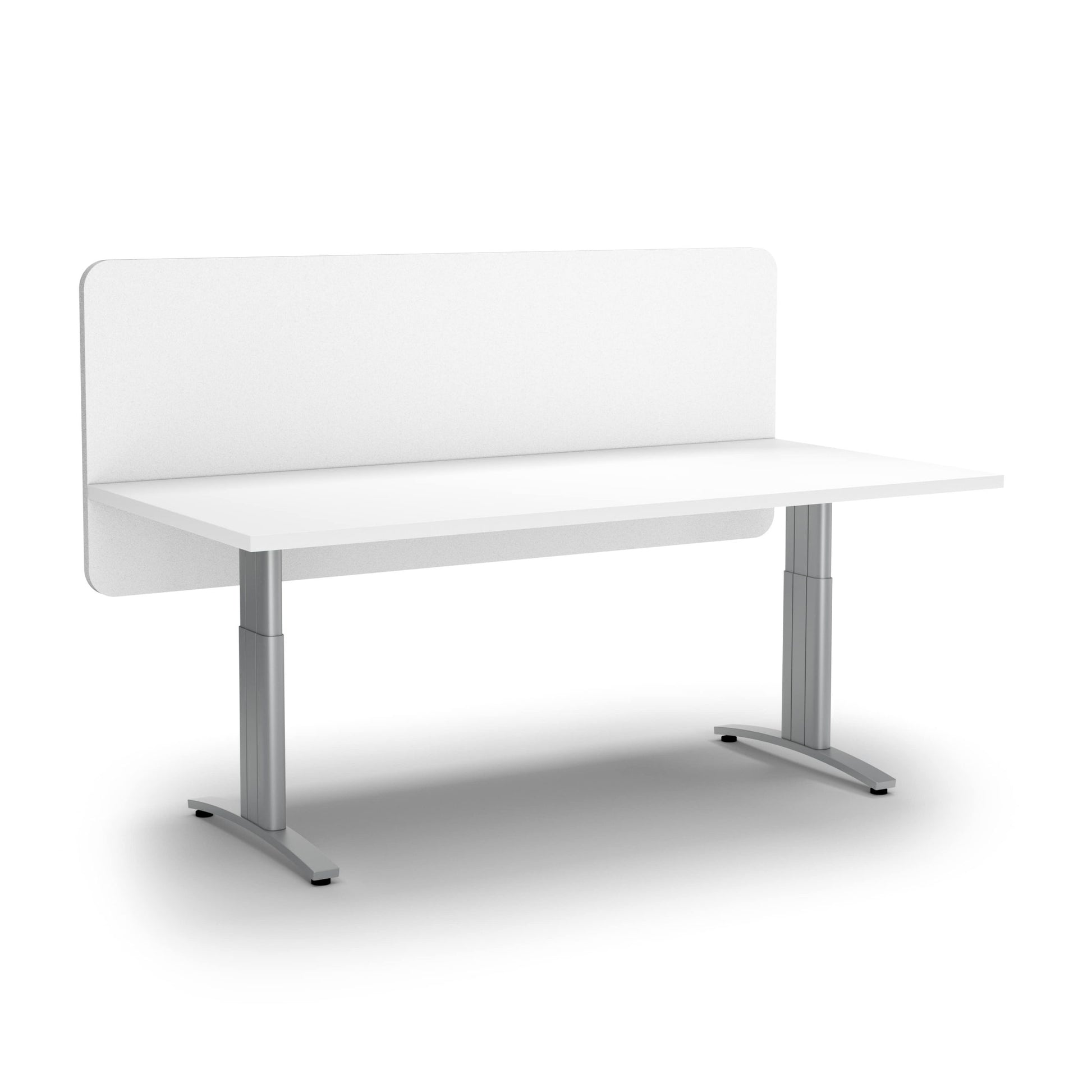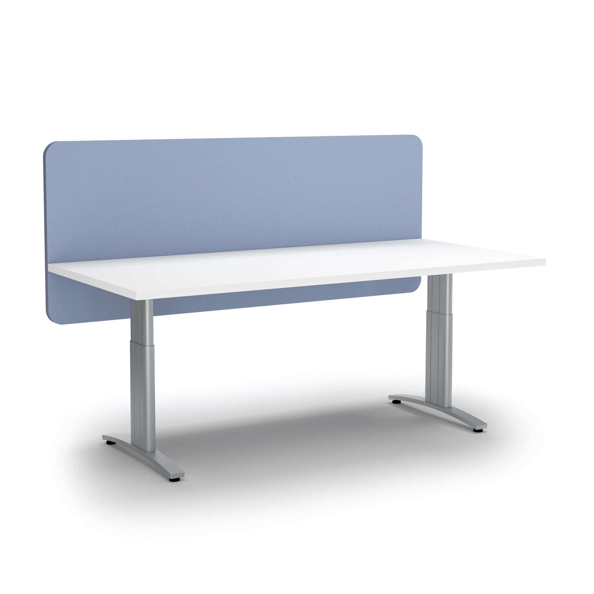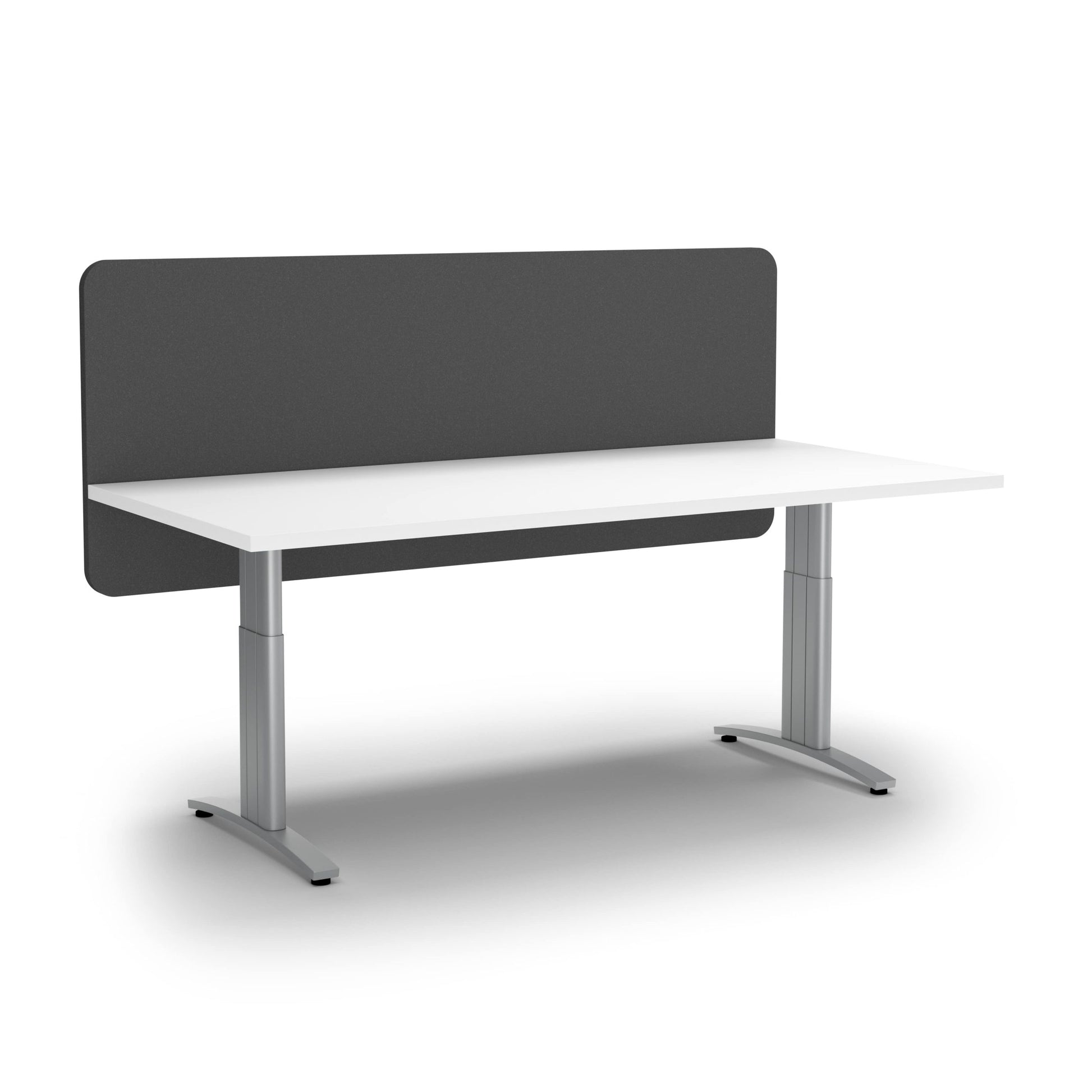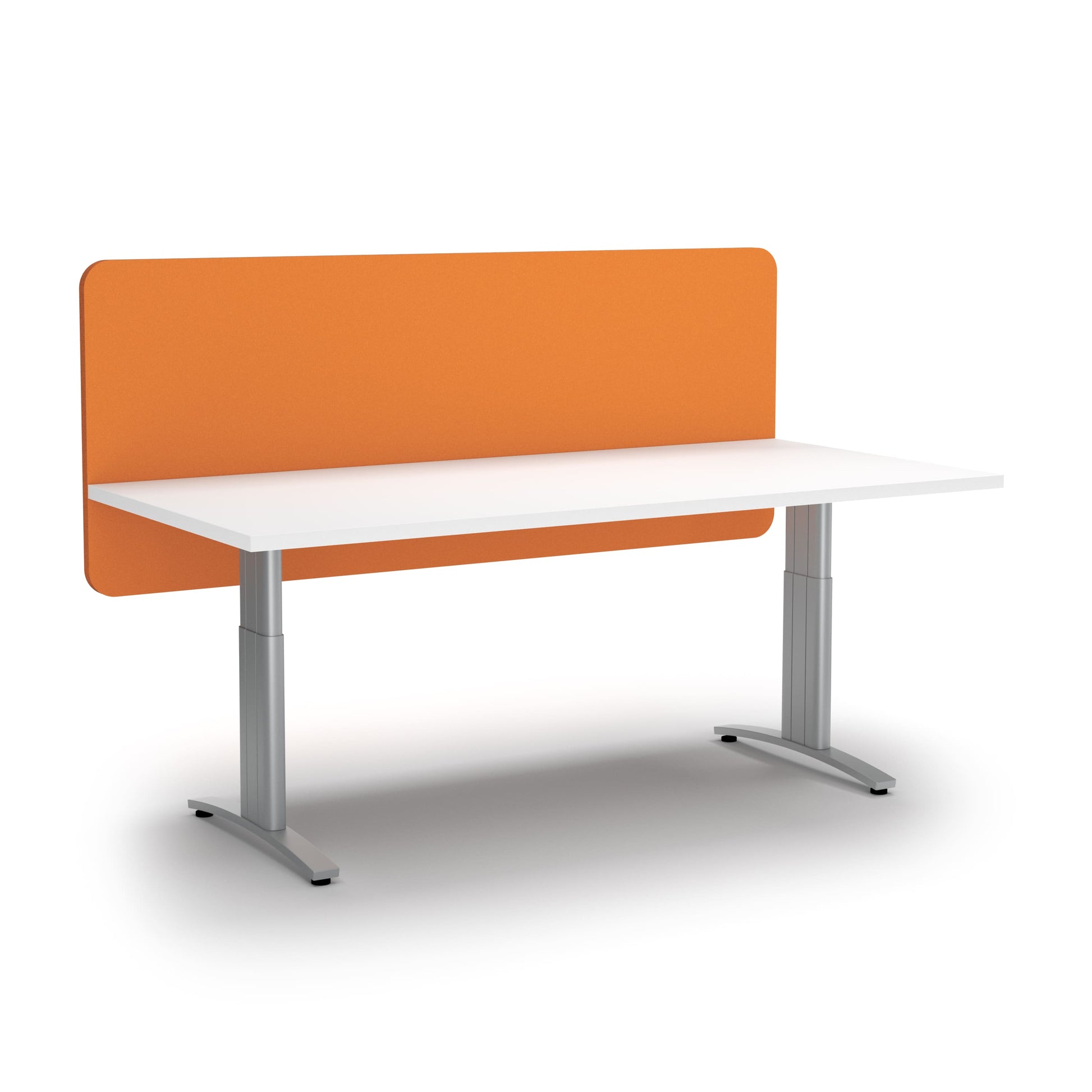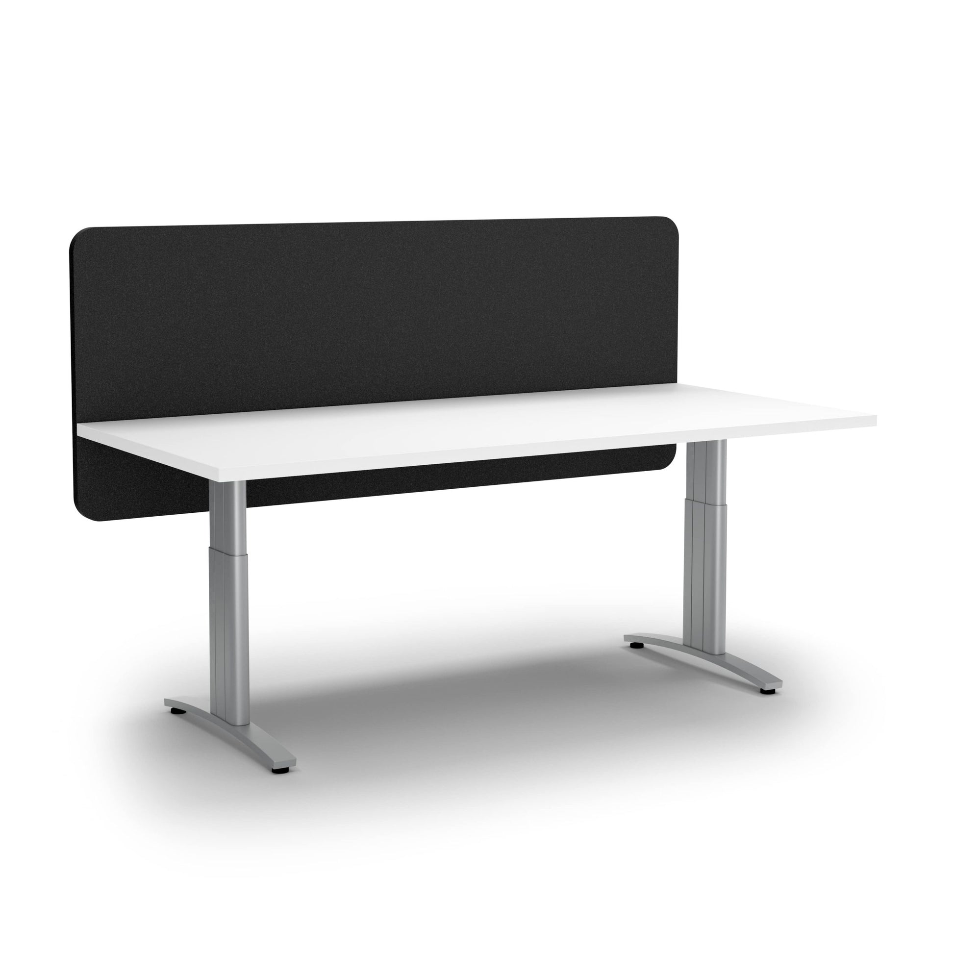 Partitions with sound-absorbing qualities to separate workspaces and create privacy. These sleek lightweight screens are available in a range of sizes for different desk options.