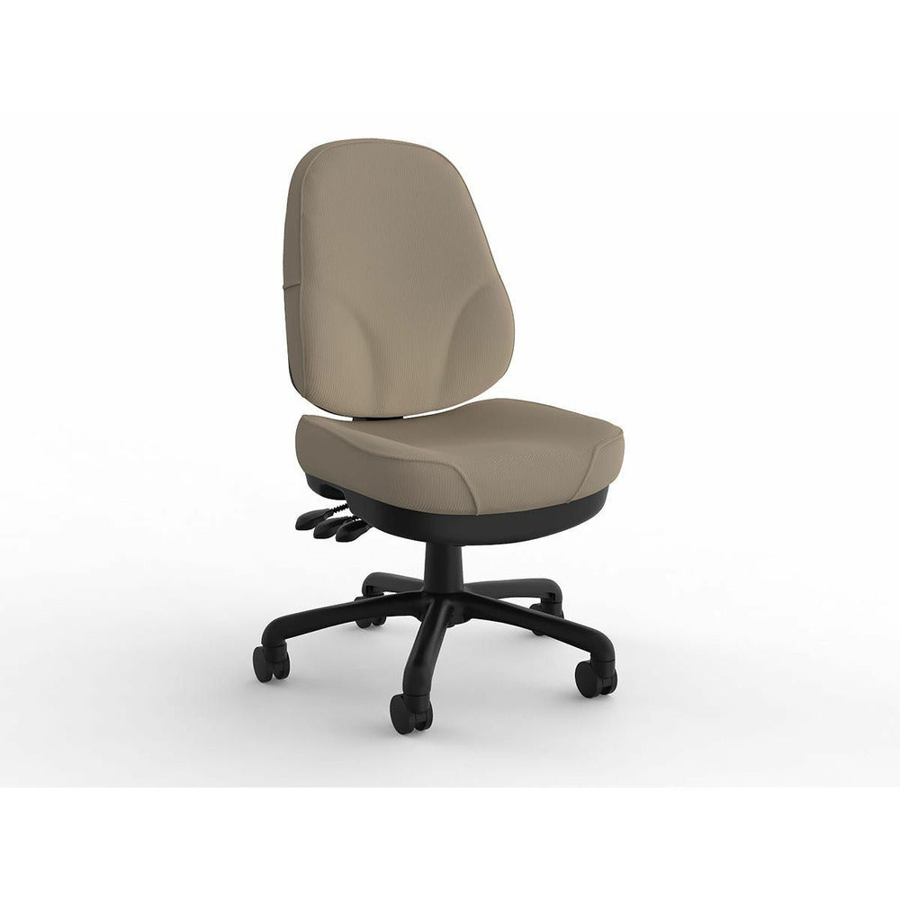 Plush high back support with molded high-density foam for comfort and support. Heavy - duty comfort, and simple 3 lever mechanism.